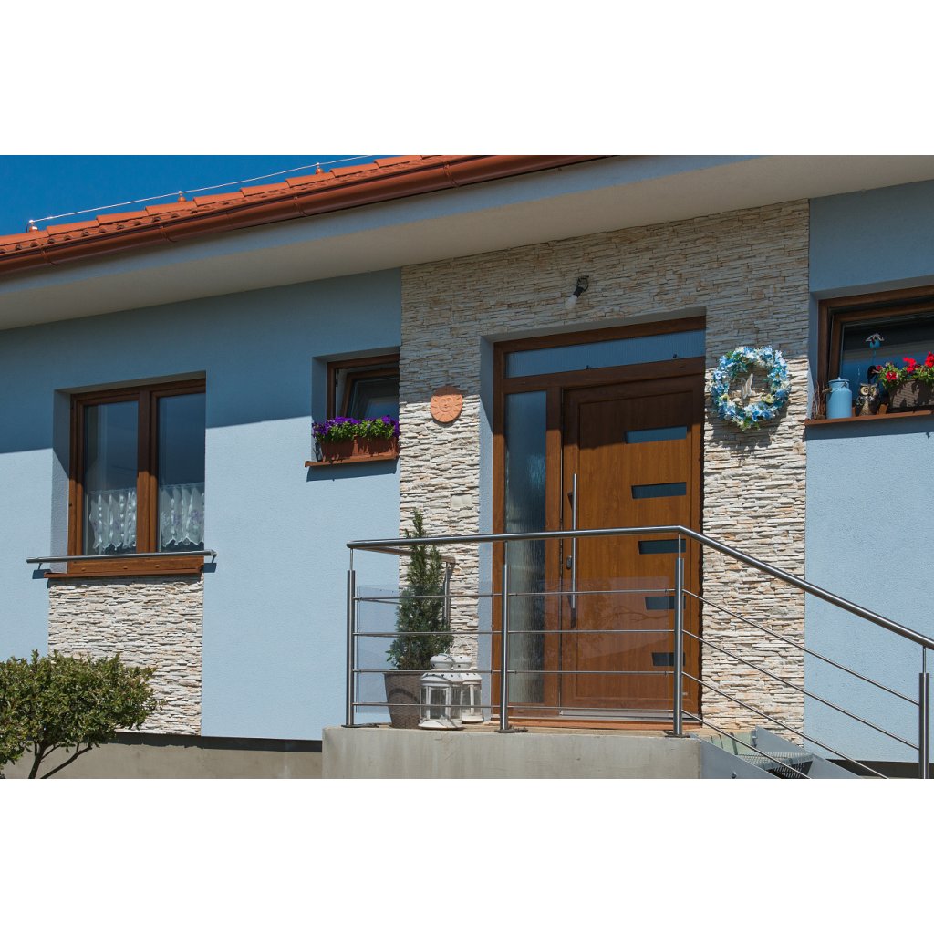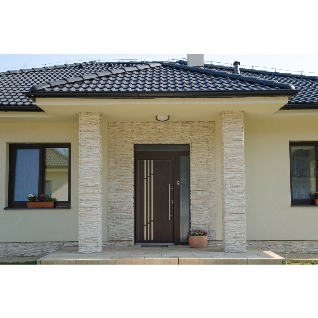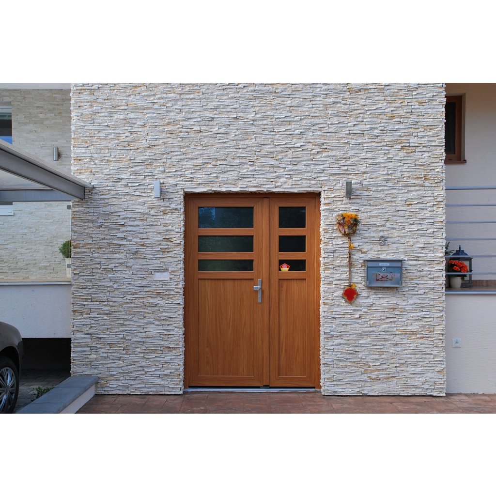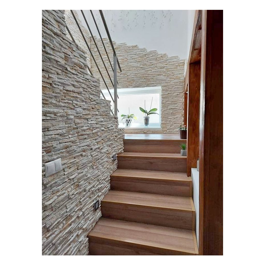 Štruktúra jemne spojených lámaných kúskov doplnená kamennými odštiepkami verne napodobňuje prirodzené vrásnenie. Vďaka zubovým spojom jednotlivých obkladačiek je ideálny aj na menšie plochy s členitým tvarom – napríklad interiérové a exteriérové krby, barové pulty či nepravidelné steny. Obklad sa kladie bez škár a montáž je nenáročná.