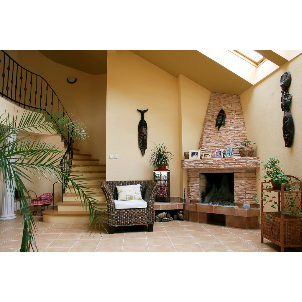 Skala Ohnivá patrí medzi obľúbené obklady zo sortimentu VASPO. Jej výrazný vzhľad voľne vrstveného kameňa a charakteristické farebné odtiene ju predurčujú na využitie v exteriéri – na obklady múrov, stien či stĺpov. V interiéri sa uplatní najmä pri krboch, komínoch alebo ako dominantný prvok na stenách. Nasvietením sa ešte viac zvýrazní jej prirodzený charakter. Montáž je jednoduchá a bez škár.
